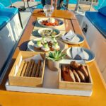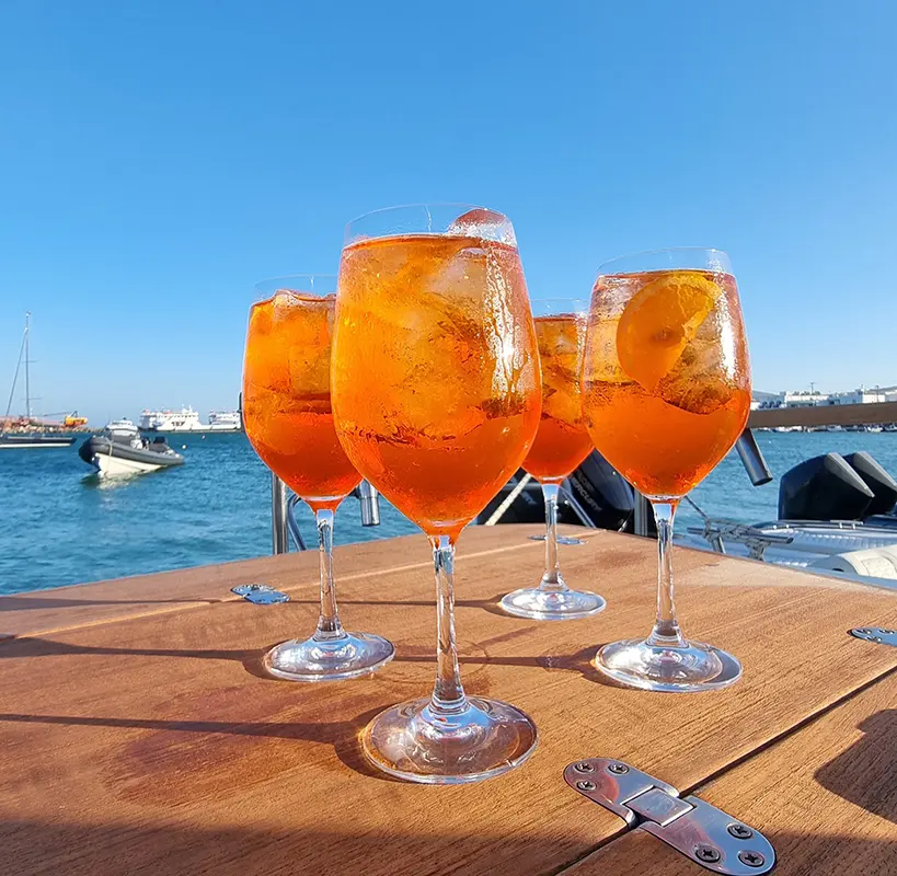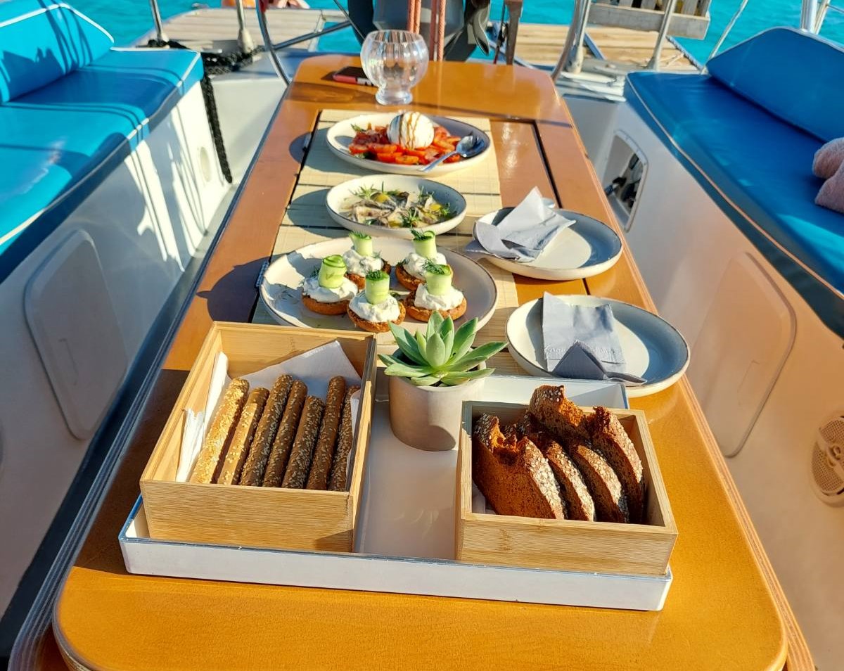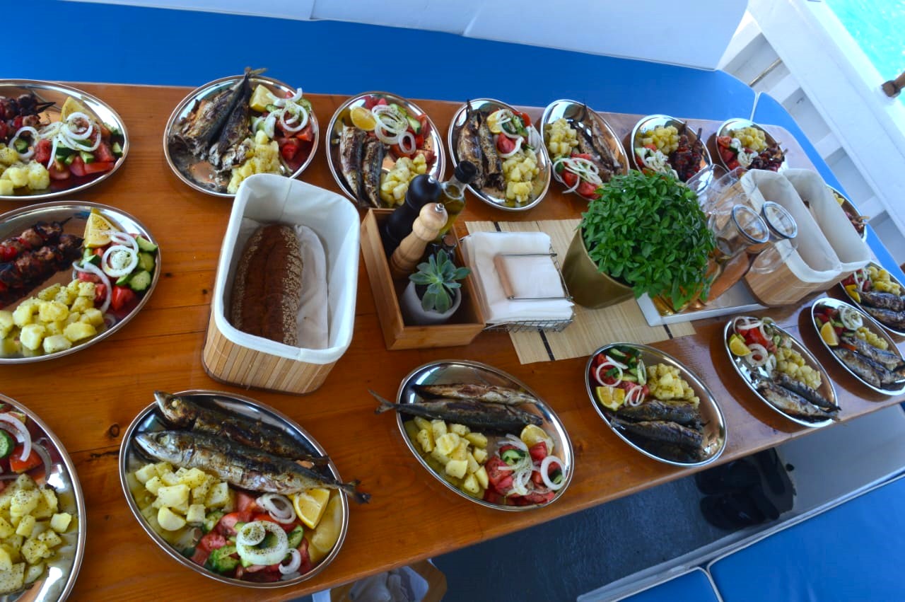 Enjoy the gentle waves and the sea breeze, explore the hidden beauty of the island and swim in crystal clear waters. On board, we will tempt you with a menu of Greek food, freshly prepared, including grilled fish, Greek salad, traditional, local delicacies and drinks.